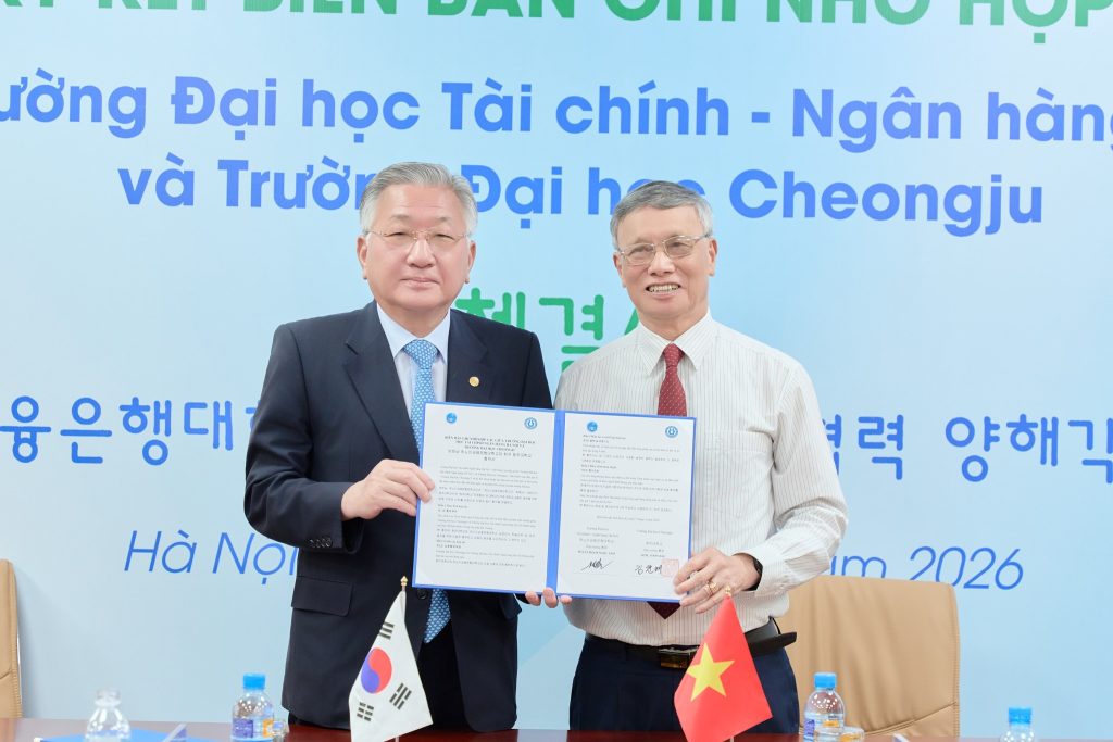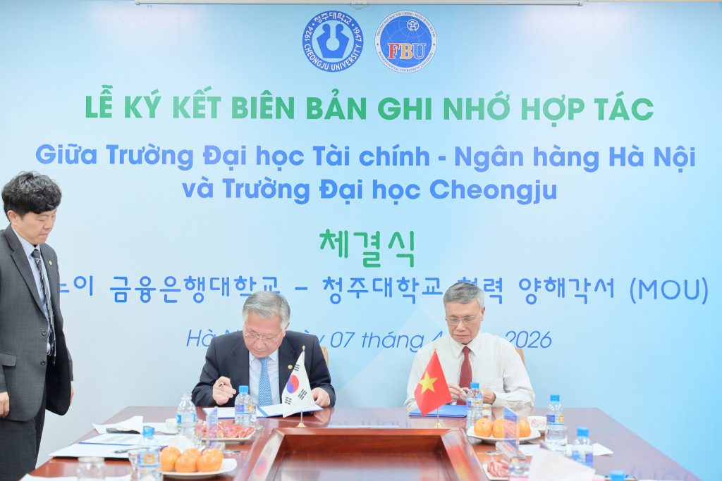 Sáng ngày 07/4/2026, Trường Đại học Tài chính – Ngân hàng Hà Nội đã long trọng tổ chức Lễ ký kết Biên bản ghi nhớ hợp tác với Đại học Cheongju, đánh dấu bước tiến quan trọng trong chiến lược quốc tế hóa giáo dục và mở rộng quan hệ hợp tác học thuật.
