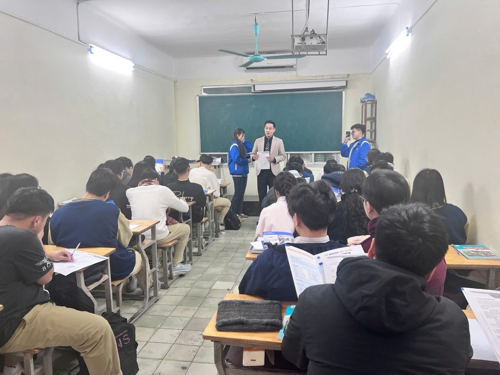 Nhằm đồng hành cùng học sinh THPT trong quá trình định hướng nghề nghiệp và lựa chọn con đường học tập phù hợp sau khi tốt nghiệp, vừa qua Viện Đào tạo Quốc tế – Trường Đại học Tài chính – Ngân hàng Hà Nội đã phối hợp với Trường THPT Huỳnh Thúc Kháng tổ chức chương trình tư vấn hướng nghiệp dành cho học sinh toàn trường.